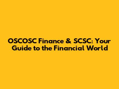 OSCOSC Finance & SCSC: Your Guide To The Financial World