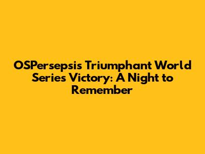After the final out, the stadium erupted in joyous celebration. The OSPersepsi players and fans embraced the moment, creating memories that will last a lifetime. The confetti rained down, the music blared, and the team celebrated their hard-earned victory. This was the moment they had all been working for, and it was glorious. The celebrations continued into the night, with the team, their families, and the fans reveling in the triumph. The victory was about more than just a game; it was about the culmination of hard work, resilience, and unwavering belief in each other. The team's post-game celebrations were a sight to behold. The players shared laughs, hugs, and tears of joy. They reveled in the camaraderie and the shared experience of achieving the ultimate goal. The team's post-game press conference was filled with excitement, and pride. Players shared their emotions and reflections on the game, expressing gratitude for the support they received from their fans, their families, and their teammates. The victory was not only celebrated by the team but also by the entire city, with fans taking to the streets to celebrate. The city came alive, with parades, parties, and the unwavering expression of pride. It was a moment of unity, with everyone sharing the joy of victory. This World Series win was a reflection of the team's commitment, their perseverance, and their unwavering belief in their abilities. It was a triumph they would cherish forever, inspiring countless people.