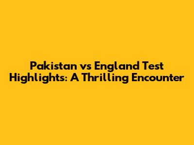 Pakistan Vs England Test Highlights: Key Moments