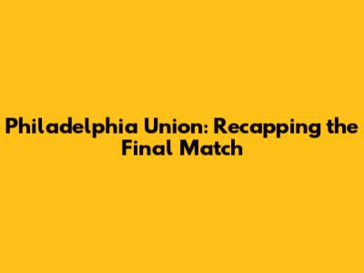 Philadelphia Union: Recapping The Final Match