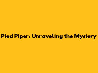 Pied Piper: Unraveling The Mystery
