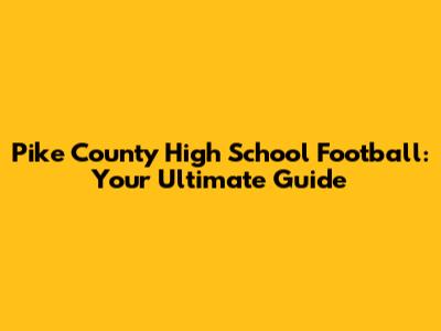 Pike County High School Football: Your Ultimate Guide