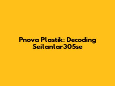 Pnova Plastik: Understanding The Seilanlar305se Code