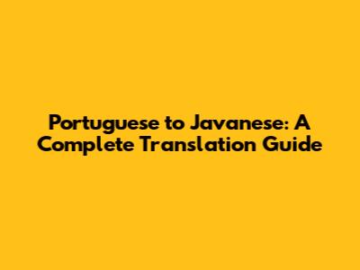 Portuguese To Javanese: A Complete Translation Guide
