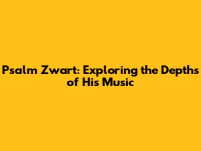 Psalm Zwart: Exploring The Depths Of His Music