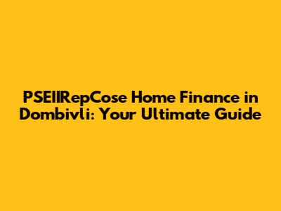 PSEIIRepCose Home Finance In Dombivli: Your Ultimate Guide