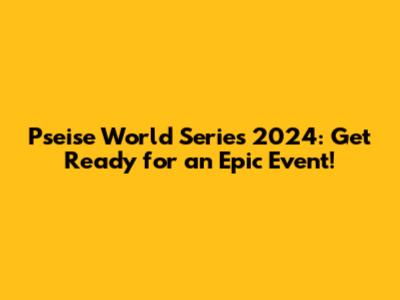Pseise World Series 2024: What You Need To Know