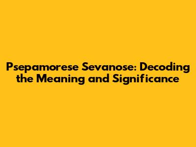 Psepamorese Sevanose: Decoding The Meaning & Significance