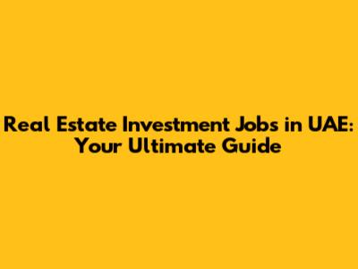 Real Estate Investment Jobs In UAE: Your Ultimate Guide