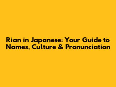Rian In Japanese: Your Guide To Names, Culture & Pronunciation