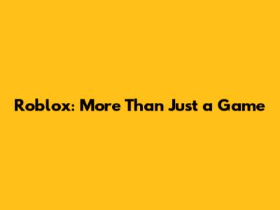 Roblox: More Than Just A Game