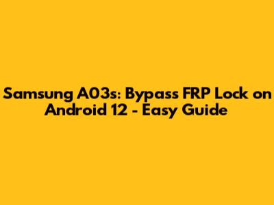 Samsung A03s: Bypass FRP Lock On Android 12 - Easy Guide
