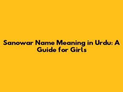 Sanowar Name Meaning In Urdu: A Guide For Girls