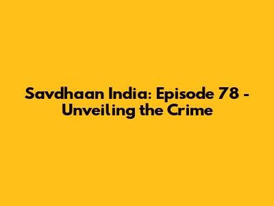 Savdhaan India: Episode 78 - Unveiling The Crime