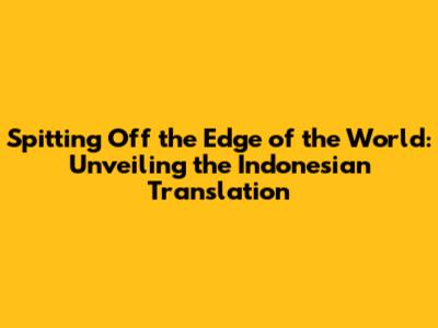 Spitting Off The Edge Of The World: A Deep Dive Into The Indonesian Translation