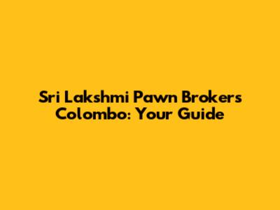 Sri Lakshmi Pawn Brokers Colombo: Your Guide