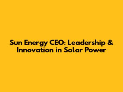 Sun Energy CEO: Leadership & Innovation In Solar Power