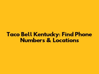 Taco Bell Kentucky: Find Phone Numbers & Locations