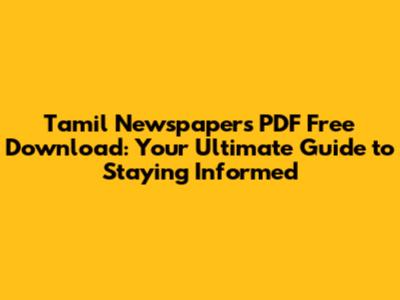 Tamil Newspapers PDF: Free Downloads & News Updates