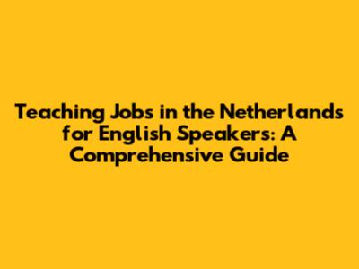 Teaching Jobs In The Netherlands For English Speakers