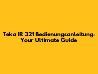 Teka IR 321 Bedienungsanleitung: Your Ultimate Guide
