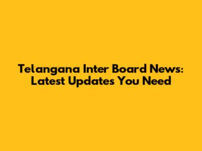 Telangana Inter Board News: Latest Updates You Need