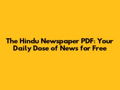 The Hindu Newspaper PDF: Get Today's Edition Free