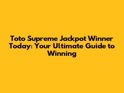Toto Supreme Jackpot Winner: Your Guide To Winning
