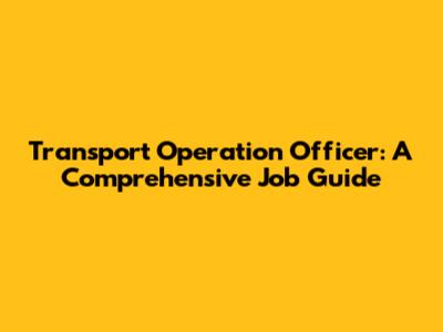 Transport Operation Officer: Job Guide
