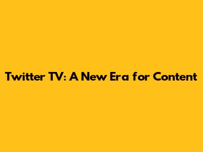 Twitter TV: A New Era For Content
