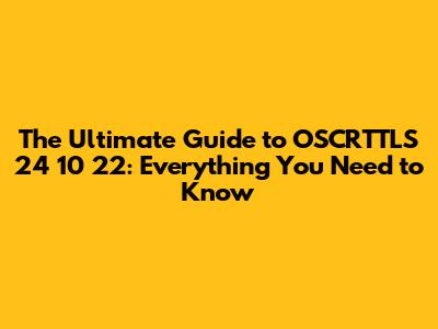 Ultimate Guide To OSCRTTLS 24 10 22