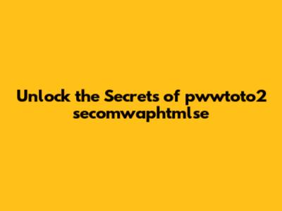 Unlock The Secrets Of Pwwtoto2 Secomwaphtmlse