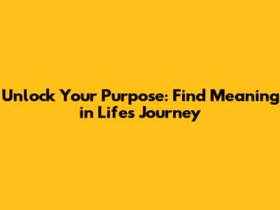 Unlock Your Purpose: Find Meaning In Life's Journey