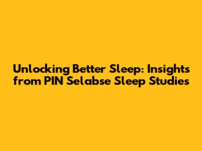 Unlocking Better Sleep: Insights From PIN Selabse Sleep Studies