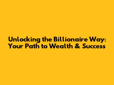 Unlocking The Billionaire Way: Your Path To Wealth & Success
