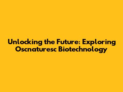 Unlocking The Future: Exploring Oscnaturesc Biotechnology