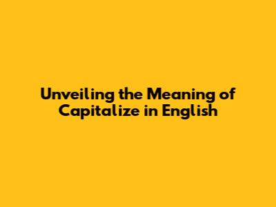Unlocking The Meaning Of 'Capitalize' In English