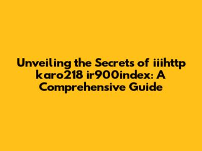 Unlocking The Power Of Iiihttp Karo218 Ir900index