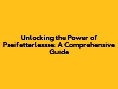 Unlocking The Power Of Pseifetterlessse: A Comprehensive Guide