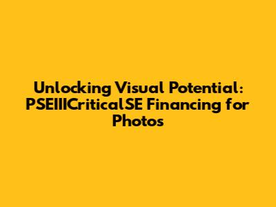 Unlocking Visual Potential: PSEIIICriticalSE Financing For Photos