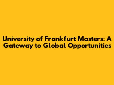 Unlocking Your Future: Masters At The University Of Frankfurt