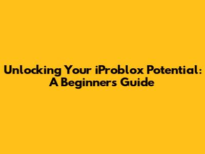 Unlocking Your IProblox Potential: A Beginner's Guide
