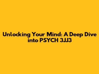 Unlocking Your Mind: A Deep Dive Into PSYCH 3JJ3
