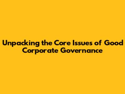 Unpacking The Core Issues Of Good Corporate Governance