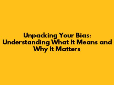 Unpacking Your 'Bias': Understanding What It Means And Why It Matters