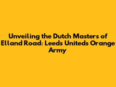 Unveiling The Dutch Masters Of Elland Road: Leeds United's Orange Army