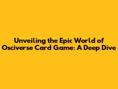 Unveiling The Epic World Of Osciverse Card Game: A Deep Dive