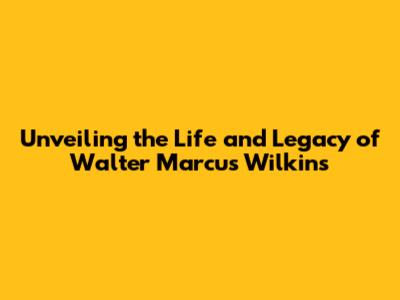 Unveiling The Life And Legacy Of Walter Marcus Wilkins