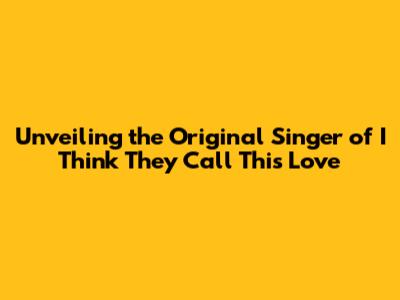 Unveiling The Original Singer Of 'I Think They Call This Love'