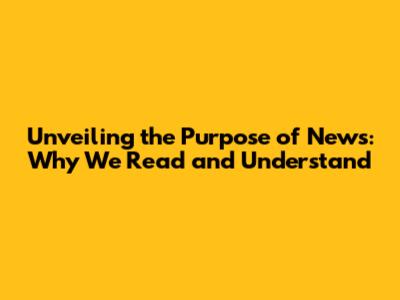 Unveiling The Purpose Of News: Why We Read And Understand